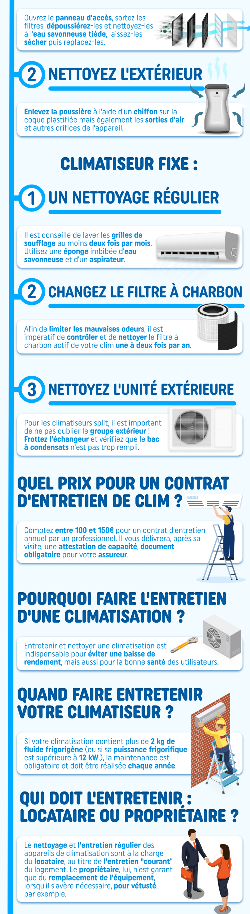 Pour éviter cela, nous vous conseillons de nettoyer votre climatisation chaque mois et de faire appel à un professionnel qualifié une fois par an. Ce dernier effectuera un entretien approfondi, garantissant ainsi le bon fonctionnement de votre appareil.